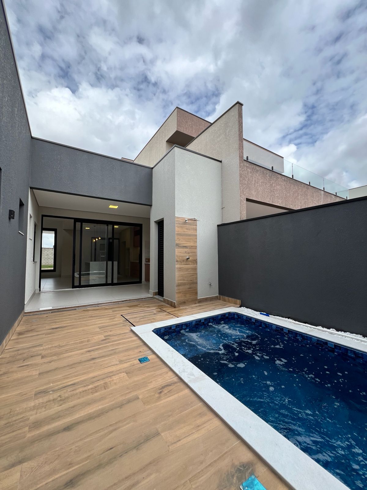 Localizada no condomínio Terras da Estância, esta residência combina privacidade, acabamento de alto padrão e uma planta moderna pensada para o dia a dia. O lote de 202m² abriga aproximadamente 150m² de construção muito bem distribuídos, com um diferencial importante: não possui vizinho de frente e oferece um quintal amplo e reservado, com 8 metros de profundidade.